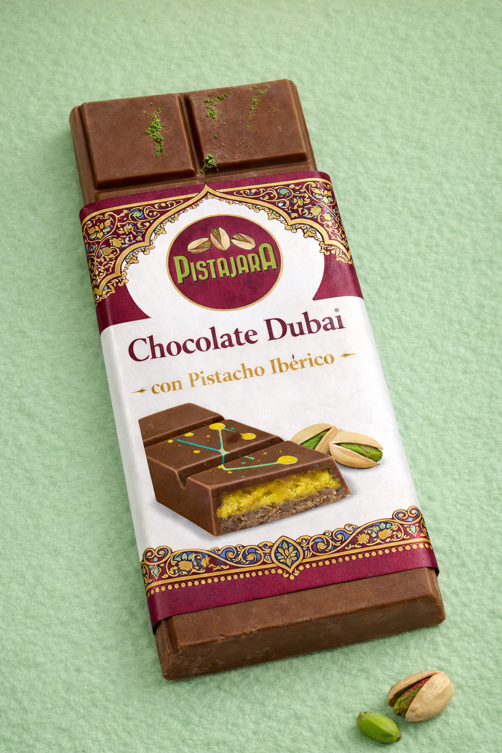 Chocolate Dubái con Pistacho Ibérico · tableta de 250 g.